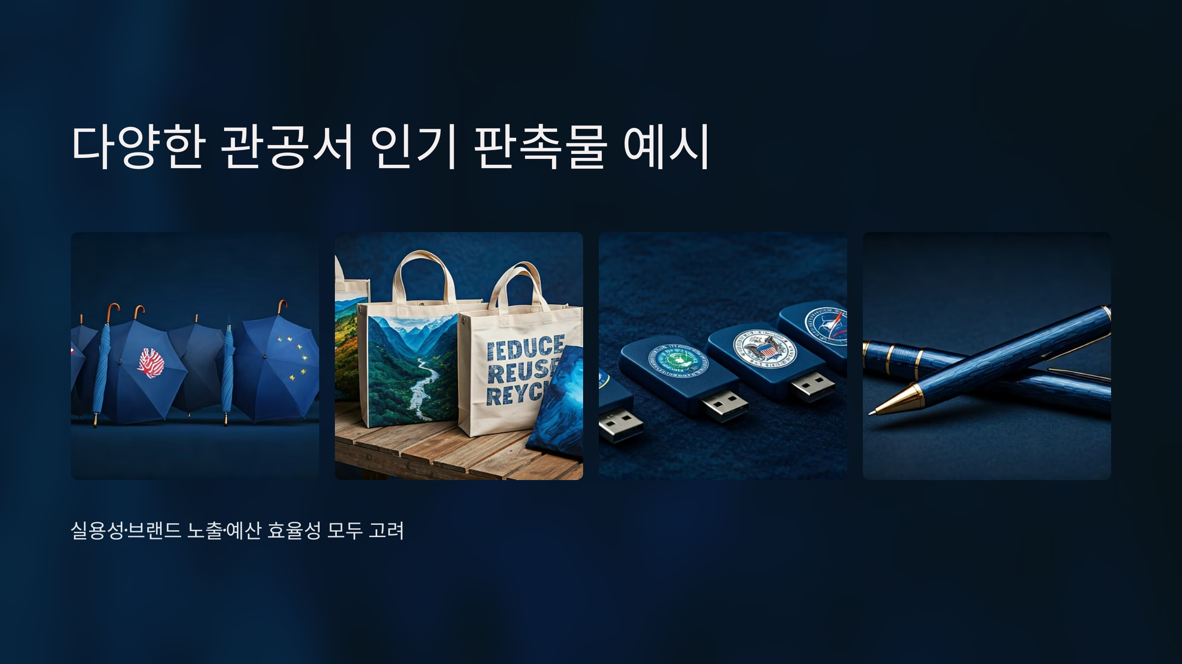 관공서 판촉물은 단순한 선물이 아닌, 기관의 가치와 메시지를 전달하는 매개체입니다. 기관의 CI와 색상을 일관되게 적용하여 인지도를 강화하세요. 🎯